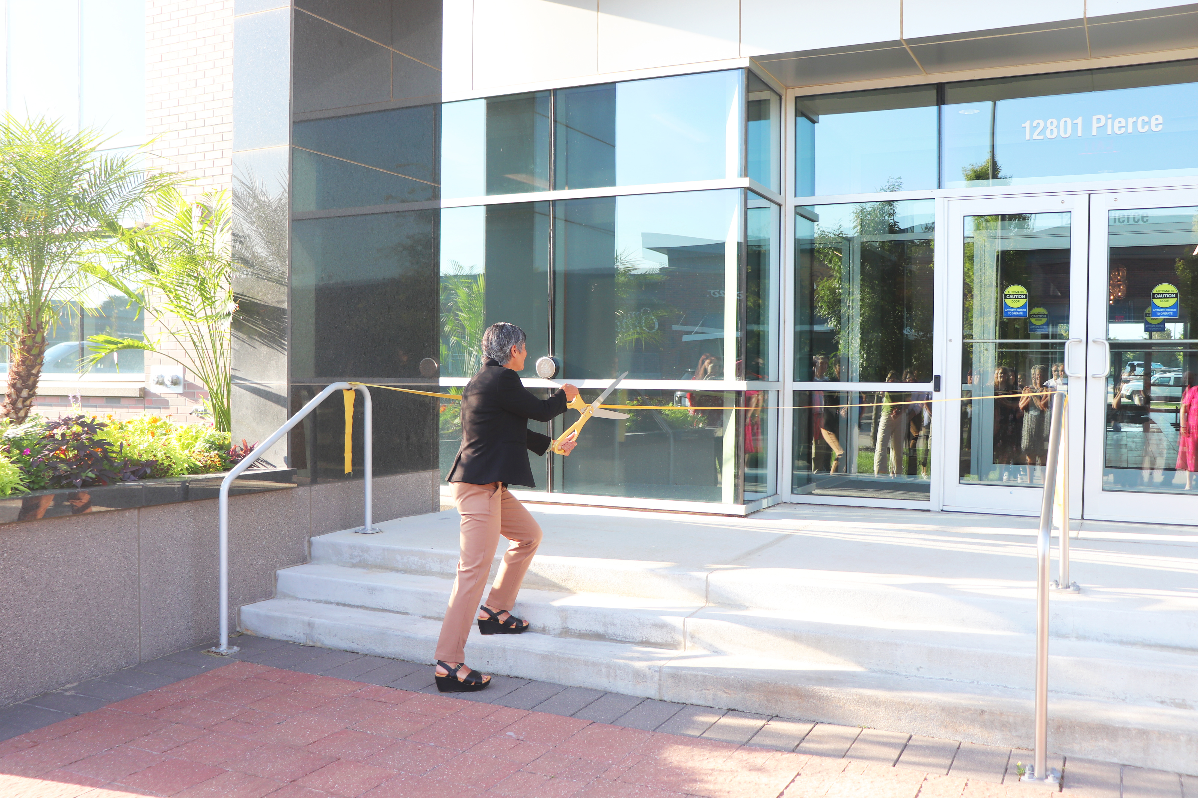 TekBrands CEO Renee Thomas Jacobs cuts the ceremonial ribbon at the TekBrands Omaha Headquarters Grand Opening Celebraion on Tuesday, July 29, 2025