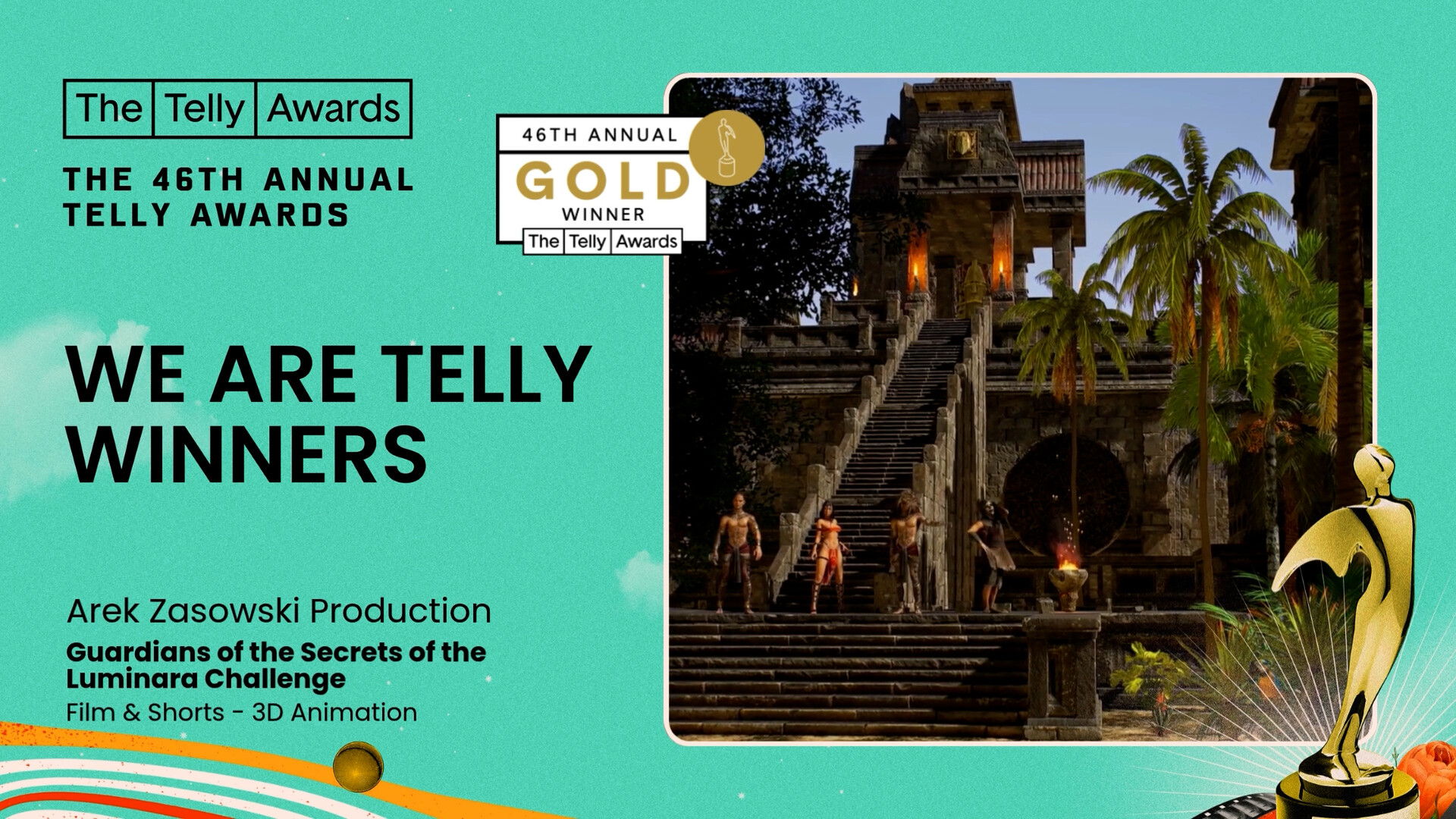 Polish-born filmmaker Arek Zasowski takes home the prestigious Gold Telly Award in 3D Animation – Film & Shorts for his cinematic holiday adventure Guardians of the Secrets of the Luminara Challenge.