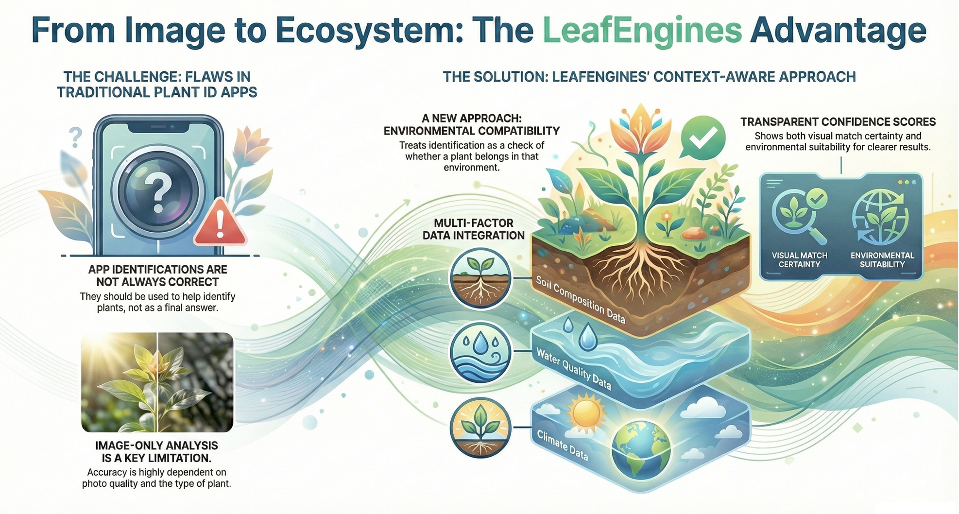 The Challenge: Flaws In Traditional Plant ID Appsl The Solution: LeafEngines Context-Aware Approach