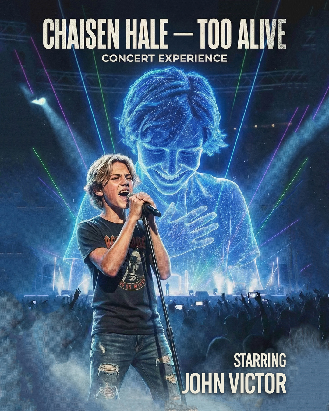 Too Alive is a first-ever live concert where a young human brings AI character Chaisen Hale to life. Thirteen-year-old John Victor embodies Chaisen on stage while Chaisen’s voice leads the show, with John singing one song in his own voice. Blending live music, theatrical storytelling, and immersive video, Too Alive shares a story of resilience and hope—a raw human–AI collaboration where technology creates opportunity.